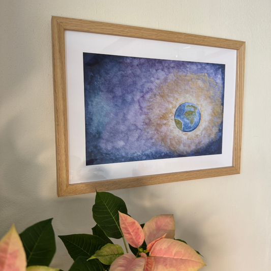 Jeder Rahmen wird sorgsam ausgewählt, um Deinen Kunstdruck sanft zu umrahmen, so, dass Farbe, Licht und Raum miteinander in Einklang schwingen. Bei dem A4 Rahmen ist ein Aufsteller aus MDF angebracht. Perfekt um den Kunstdruck z.B. auf einer Kommode aufzustellen.